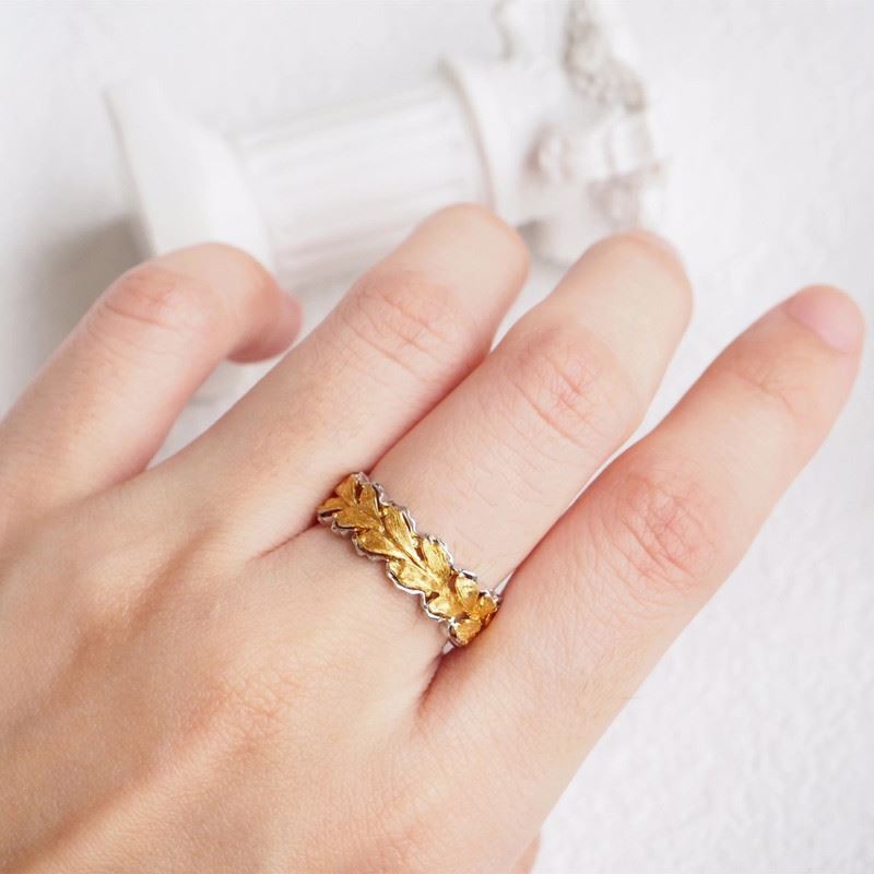 This exquisite 18K gold ring features a stunning ginkgo leaf design, combining rich gold with delicate details. The intricate leaf pattern symbolizes longevity and resilience, making this piece both meaningful and beautifully crafted, perfect for any nature lover or elegant occasion.Total weight: 5.35g.Note: GUILD certificate, comes with a jewelry, gemstone, and precious metal authentication certificate.