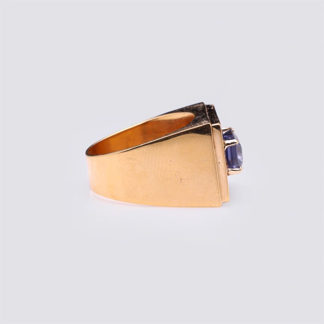 18K Gold Iolite & Yellow Sapphire Ring containing one Iolite 11mm x 6.3mm weighing approximately 2.2cts. Ten oval yellow sapphire weighing approximately 3.5 cts. Total weight of ring is 13.5 gm. Estimated retail value $5,500.