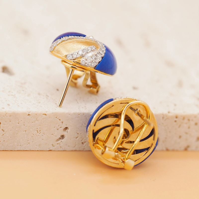 These 18K gold earrings feature lapis lazuli stones, whose deep blue hue complements the gold’s warm shine. The elegant design, combined with the natural color of the lapis lazuli, perfectly blends luxury with nature.Total weight: 7.98g.Note: GUILD certificate, comes with a jewelry, gemstone, and precious metal authentication certificate.