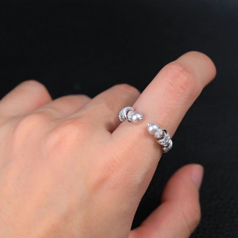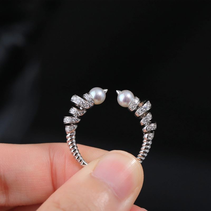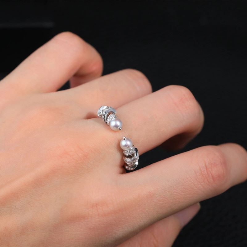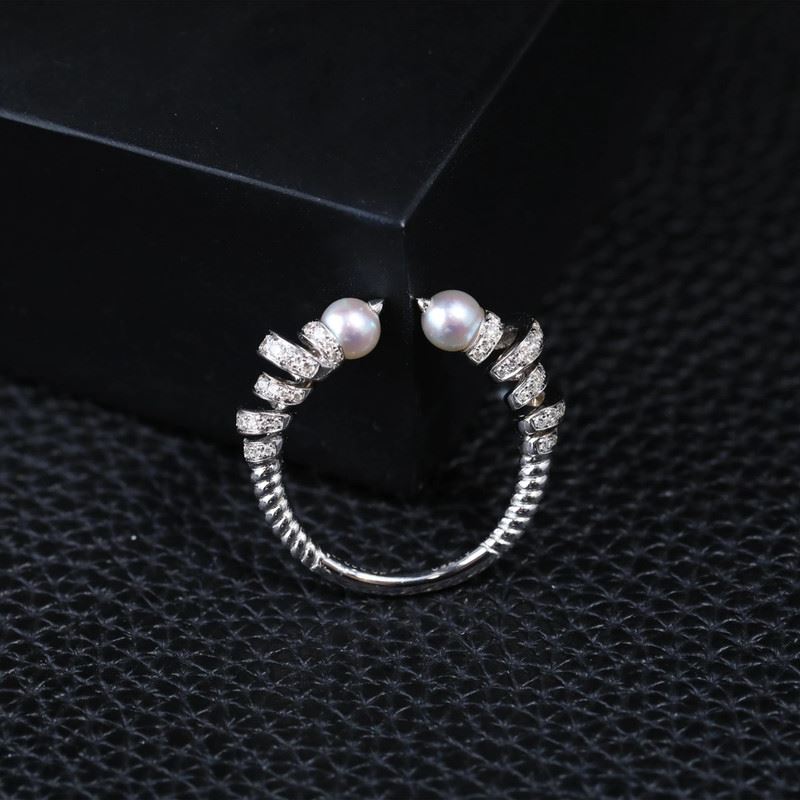 This 18K gold ring features two elegant pearls at its center, surrounded by sparkling diamonds. The unique spiral design combines the soft luster of the pearls with the brilliance of the diamonds, creating a perfect blend of modern and classic, exuding a distinct charm.Ring size: 6, circumference: 52 mm, diameter: 16.6 mm, total weight: 3.97g.Note: GUILD certificate, comes with a jewelry, gemstone, and precious metal authentication certificate.