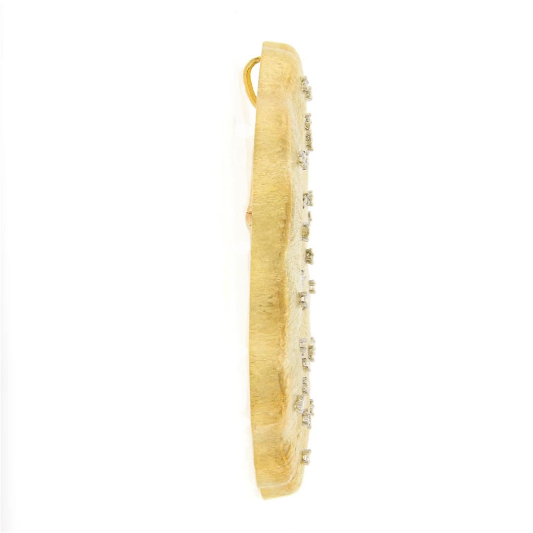 a solid 18k yellow gold & platinum large flower pendant brooch, with 29 round cut natural diamonds (G/H - VS1-VS2 ; 1.10ctw ), and 37 round cut natural rubies (7+ctw). Measures 77.4mm in diameter and weighs a total of 60.15 grams, inside bail measurements 9x5.3mm.