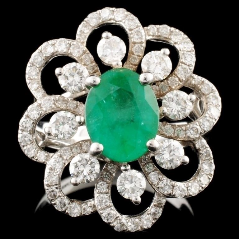 18K Gold Ring: 1.34ct Emerald, 1.22ctw Diamond
