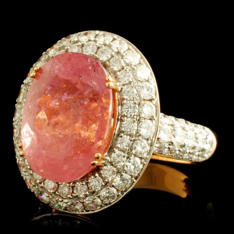 18K Gold Ring: 7.88ct Tourmaline, 2.16ctw Diam