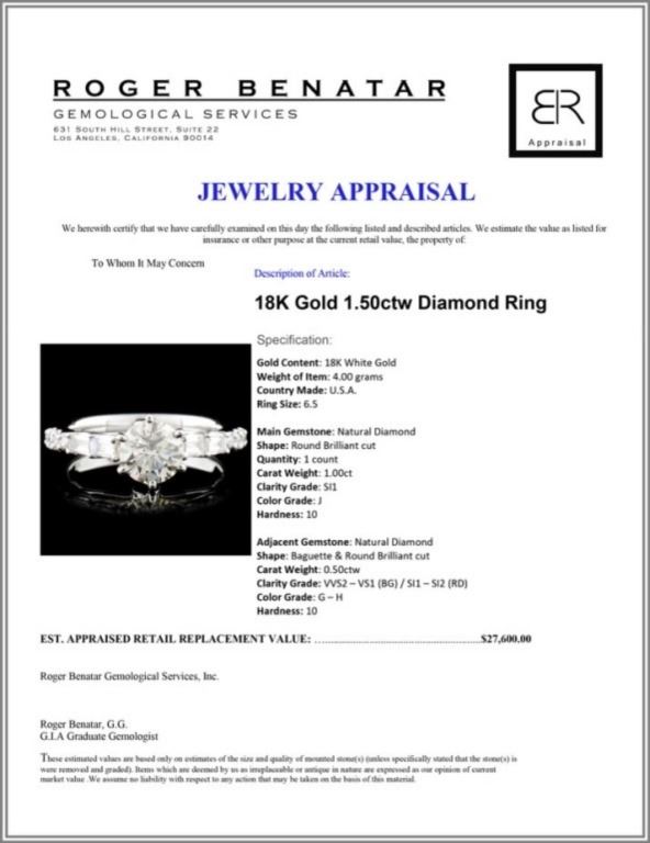 Regarding Appraised Jewelry and Loose Stones - Auctionfarm sends them out to a third party for Retail Replacement Value Appraisals, which are the most common. These types of evaluations are written for insurance needs. This would be the cost to replace the jewelry with an item of equal quality and kind, considered to be the current market price or the replacement value. This type of appraisal is done to protect you in the event of damage or loss of a valuable item. Our appraisals are conducted by independent 3rd Party appraisal firms that utilizes Certified GIA Gemologist. Appraisals should be used for verification of gemstone and/or metal weight, size, and grade only, not actual value. Appraisal value should be considered for insurance purposes only, not actual value, as price varies greatly from retail locations thru out the world. Items should not be purchased with the expectation to resell for appraisal price, or for profit.