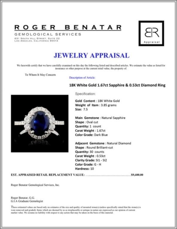 Regarding Appraised Jewelry and Loose Stones - Auctionfarm sends them out to a third party for Retail Replacement Value Appraisals, which are the most common. These types of evaluations are written for insurance needs. This would be the cost to replace the jewelry with an item of equal quality and kind, considered to be the current market price or the replacement value. This type of appraisal is done to protect you in the event of damage or loss of a valuable item. Our appraisals are conducted by independent 3rd Party appraisal firms that utilizes Certified GIA Gemologist. Appraisals should be used for verification of gemstone and/or metal weight, size, and grade only, not actual value. Appraisal value should be considered for insurance purposes only, not actual value, as price varies greatly from retail locations thru out the world. Items should not be purchased with the expectation to resell for appraisal price, or for profit.