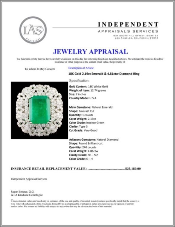 Regarding Appraised Jewelry and Loose Stones - Auctionfarm sends them out to a third party for Retail Replacement Value Appraisals, which are the most common. These types of evaluations are written for insurance needs. This would be the cost to replace the jewelry with an item of equal quality and kind, considered to be the current market price or the replacement value. This type of appraisal is done to protect you in the event of damage or loss of a valuable item. Our appraisals are conducted by independent 3rd Party appraisal firms that utilizes Certified GIA Gemologist. Appraisals should be used for verification of gemstone and/or metal weight, size, and grade only, not actual value. Appraisal value should be considered for insurance purposes only, not actual value, as price varies greatly from retail locations thru out the world. Items should not be purchased with the expectation to resell for appraisal price, or for profit.