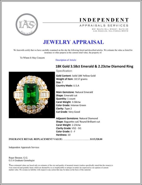 Regarding Appraised Jewelry and Loose Stones - Auctionfarm sends them out to a third party for Retail Replacement Value Appraisals, which are the most common. These types of evaluations are written for insurance needs. This would be the cost to replace the jewelry with an item of equal quality and kind, considered to be the current market price or the replacement value. This type of appraisal is done to protect you in the event of damage or loss of a valuable item. Our appraisals are conducted by independent 3rd Party appraisal firms that utilizes Certified GIA Gemologist. Appraisals should be used for verification of gemstone and/or metal weight, size, and grade only, not actual value. Appraisal value should be considered for insurance purposes only, not actual value, as price varies greatly from retail locations thru out the world. Items should not be purchased with the expectation to resell for appraisal price, or for profit.