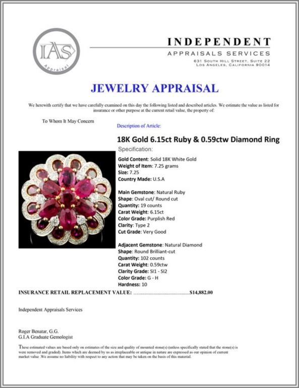 Regarding Appraised Jewelry and Loose Stones - Auctionfarm sends them out to a third party for Retail Replacement Value Appraisals, which are the most common. These types of evaluations are written for insurance needs. This would be the cost to replace the jewelry with an item of equal quality and kind, considered to be the current market price or the replacement value. This type of appraisal is done to protect you in the event of damage or loss of a valuable item. Our appraisals are conducted by independent 3rd Party appraisal firms that utilizes Certified GIA Gemologist. Appraisals should be used for verification of gemstone and/or metal weight, size, and grade only, not actual value. Appraisal value should be considered for insurance purposes only, not actual value, as price varies greatly from retail locations thru out the world. Items should not be purchased with the expectation to resell for appraisal price, or for profit.