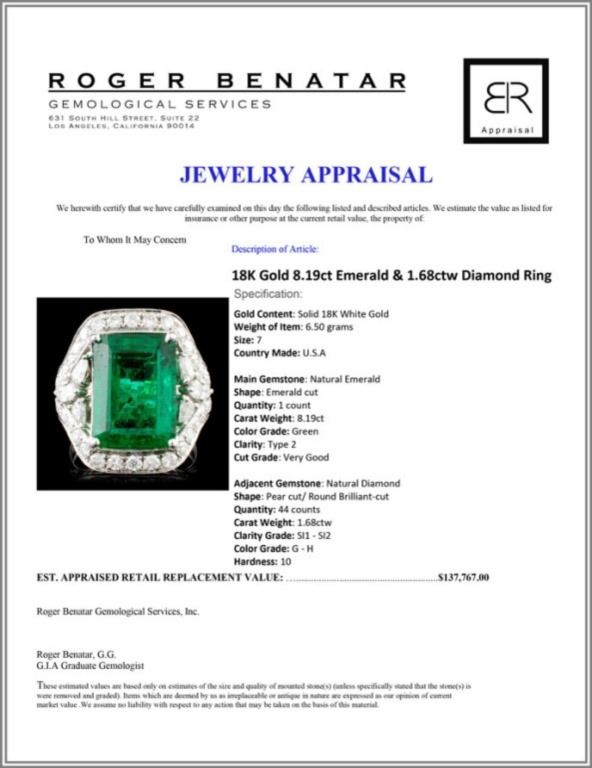 Regarding Appraised Jewelry and Loose Stones - Auctionfarm sends them out to a third party for Retail Replacement Value Appraisals, which are the most common. These types of evaluations are written for insurance needs. This would be the cost to replace the jewelry with an item of equal quality and kind, considered to be the current market price or the replacement value. This type of appraisal is done to protect you in the event of damage or loss of a valuable item. Our appraisals are conducted by independent 3rd Party appraisal firms that utilizes Certified GIA Gemologist. Appraisals should be used for verification of gemstone and/or metal weight, size, and grade only, not actual value. Appraisal value should be considered for insurance purposes only, not actual value, as price varies greatly from retail locations thru out the world. Items should not be purchased with the expectation to resell for appraisal price, or for profit.