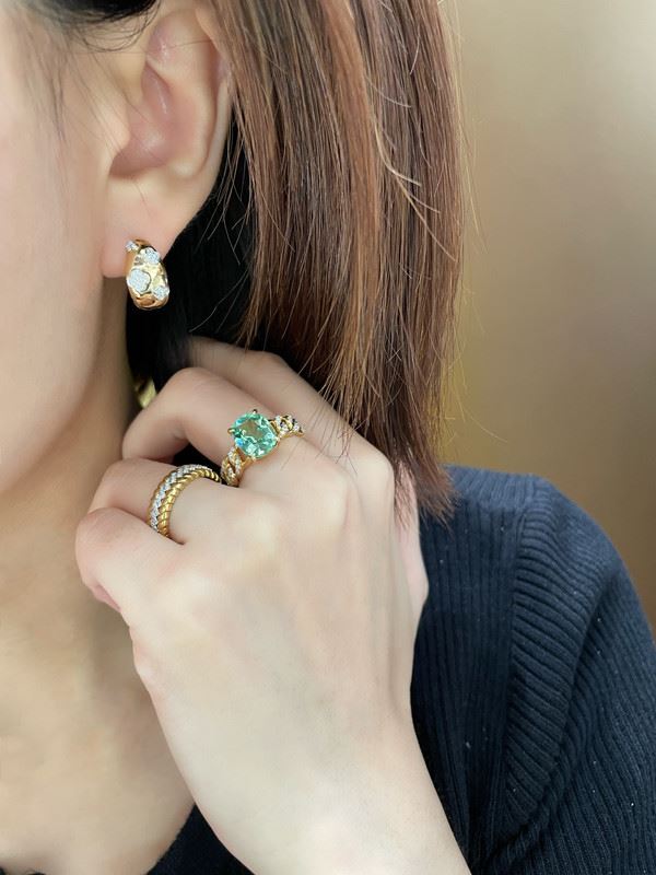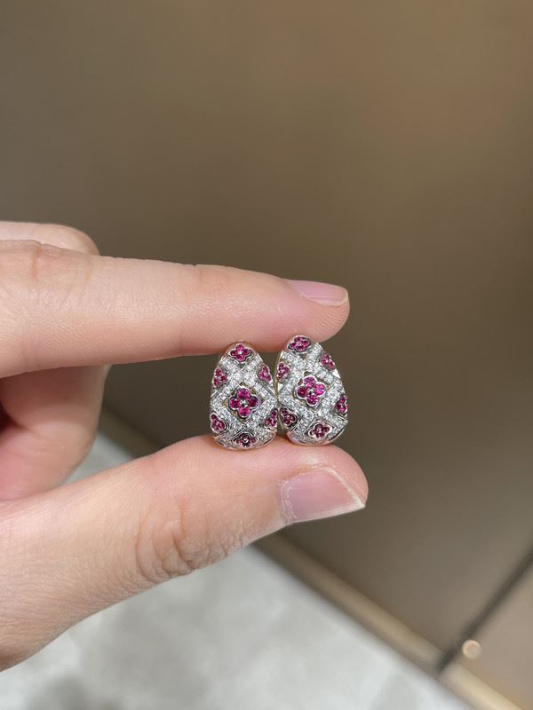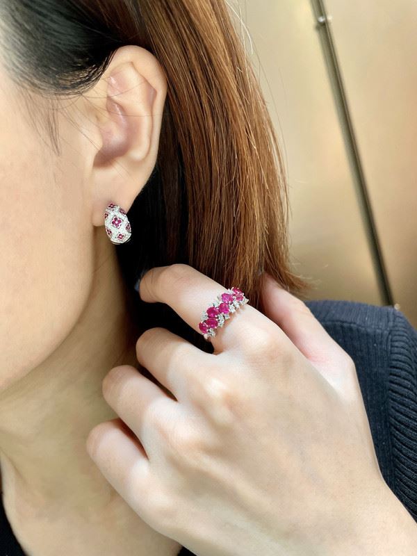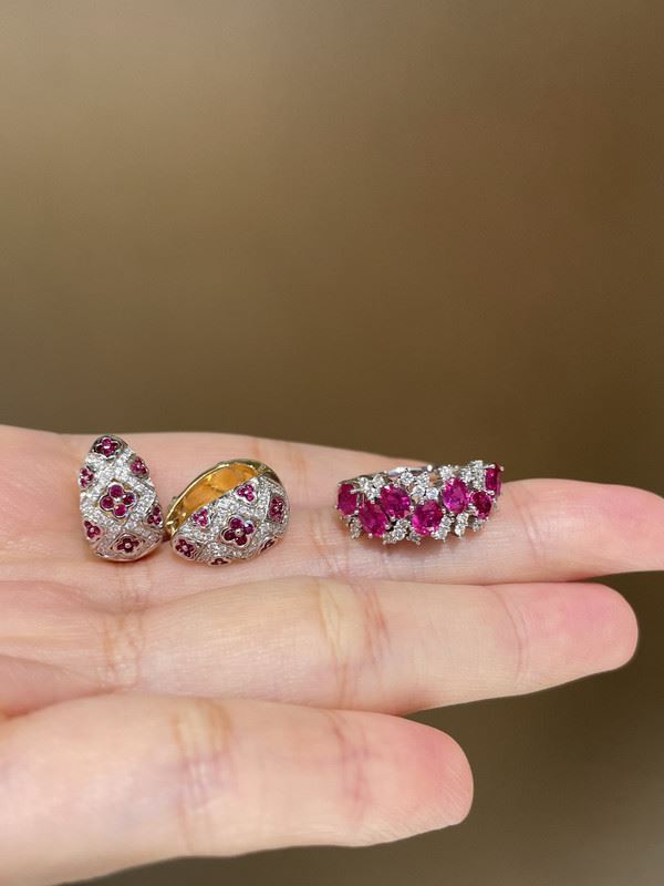 These 18K gold earrings feature a unique double-sided design, with rubies and diamonds on both sides. The exquisite craftsmanship and symmetrical design radiate luxury and uniqueness, with the vibrant red of the rubies complementing the brilliance of the diamonds, creating a perfect blend of elegance and nobility.Total weight: 7.28g.Note: GUILD certificate, comes with a jewelry, gemstone, and precious metal authentication certificate.