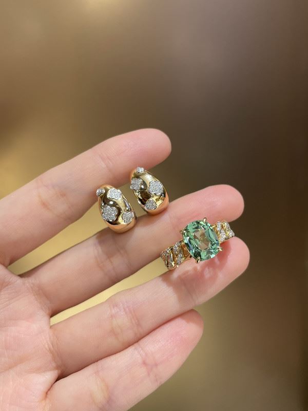 These 18K gold earrings feature a unique double-sided design, with rubies and diamonds on both sides. The exquisite craftsmanship and symmetrical design radiate luxury and uniqueness, with the vibrant red of the rubies complementing the brilliance of the diamonds, creating a perfect blend of elegance and nobility.Total weight: 7.28g.Note: GUILD certificate, comes with a jewelry, gemstone, and precious metal authentication certificate.