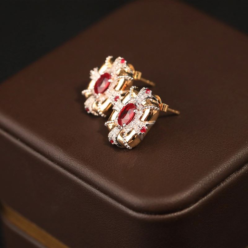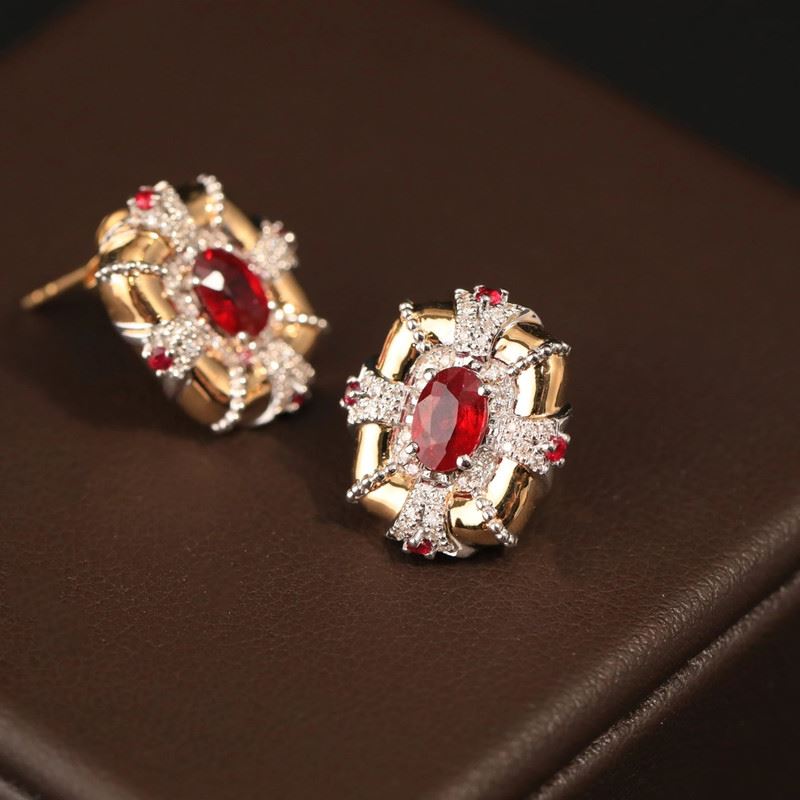These 18K gold earrings feature a unique cross design, with vibrant rubies at the center and surrounding diamonds and small rubies. The deep red hue of the rubies contrasts beautifully with the brilliance of the diamonds, creating a luxurious and elegant look.Total weight: 6.87g.Note: GUILD certificate, comes with a jewelry, gemstone, and precious metal authentication certificate.