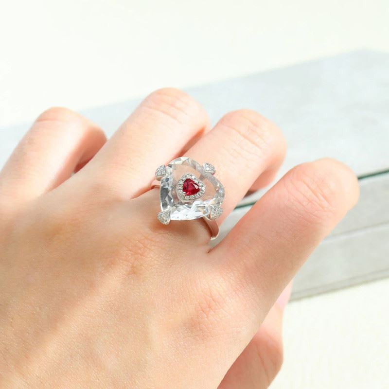 This 18K gold ruby heart ring features a stunning ruby at the center, surrounded by sparkling diamonds, combining romance and luxury in perfect harmony. The heart-shaped gemstone symbolizes genuine affection, and the clear crystal and diamonds complement each other, exuding elegance and nobility. Ideal for special occasions, it highlights the wearer’s unique charm.Ring size: 6, circumference: 52 mm, diameter: 16.6 mm, total weight: 5.47g.Note: GUILD certificate, comes with a jewelry, gemstone, and precious metal authentication certificate.