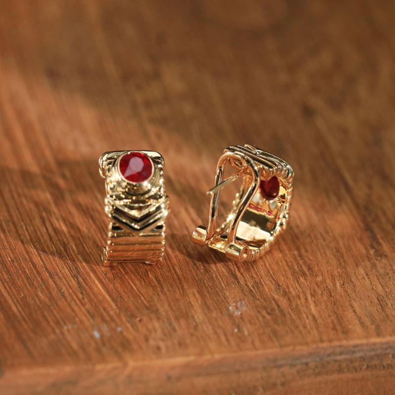 These 18K gold stud earrings feature oval-shaped rubies at the center, surrounded by intricate gold detailing. The deep red of the rubies complements the gold’s radiant glow, creating a look of timeless elegance and sophistication, perfect for any occasion.Total weight: 5.53g.Note: GUILD certificate, comes with a jewelry, gemstone, and precious metal authentication certificate.