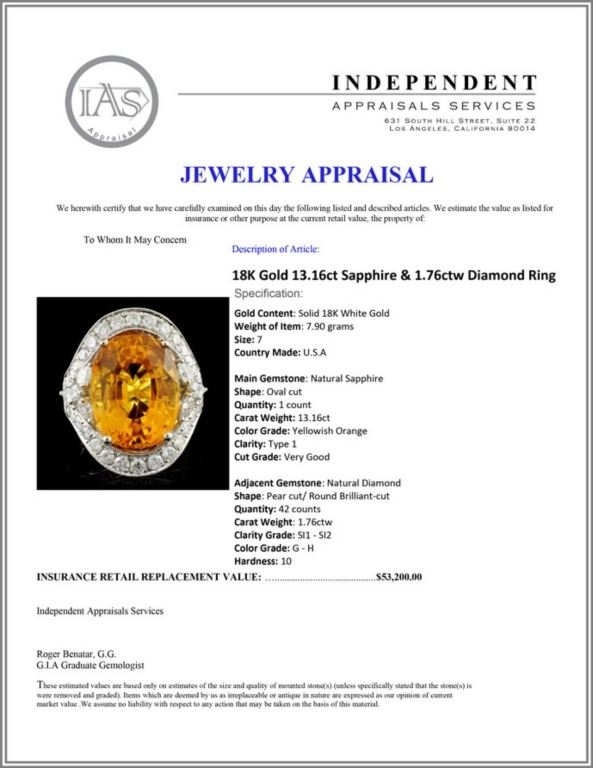 Regarding Appraised Jewelry and Loose Stones - Auctionfarm sends them out to a third party for Retail Replacement Value Appraisals, which are the most common. These types of evaluations are written for insurance needs. This would be the cost to replace the jewelry with an item of equal quality and kind, considered to be the current market price or the replacement value. This type of appraisal is done to protect you in the event of damage or loss of a valuable item. Our appraisals are conducted by independent 3rd Party appraisal firms that utilizes Certified GIA Gemologist. Appraisals should be used for verification of gemstone and/or metal weight, size, and grade only, not actual value. Appraisal value should be considered for insurance purposes only, not actual value, as price varies greatly from retail locations thru out the world. Items should not be purchased with the expectation to resell for appraisal price, or for profit.