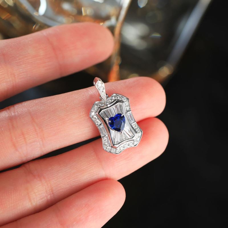 This 18K gold pendant features a heart-shaped sapphire surrounded by radiating baguette and round-cut diamonds. The interplay of light and structure enhances the sapphire’s deep blue brilliance, exuding timeless elegance and luxury.Total weight: 3.53g.