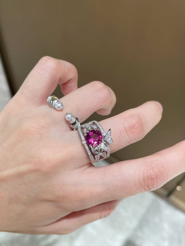 This 18K gold ring features a captivating pink tourmaline, surrounded by sparkling diamonds that enhance its luxurious brilliance. The finely crafted band blends modern and classic elements, exuding an elegant and regal aura, making it a highly attractive piece of jewelry.Ring size: 6, circumference: 52 mm, diameter: 16.6 mm, total weight: 8.05g.Note: GUILD certificate, comes with a jewelry, gemstone, and precious metal authentication certificate.