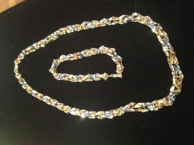 18K Gold Two Tone Abstract Necklace & Bracelet, 18.8 Grams