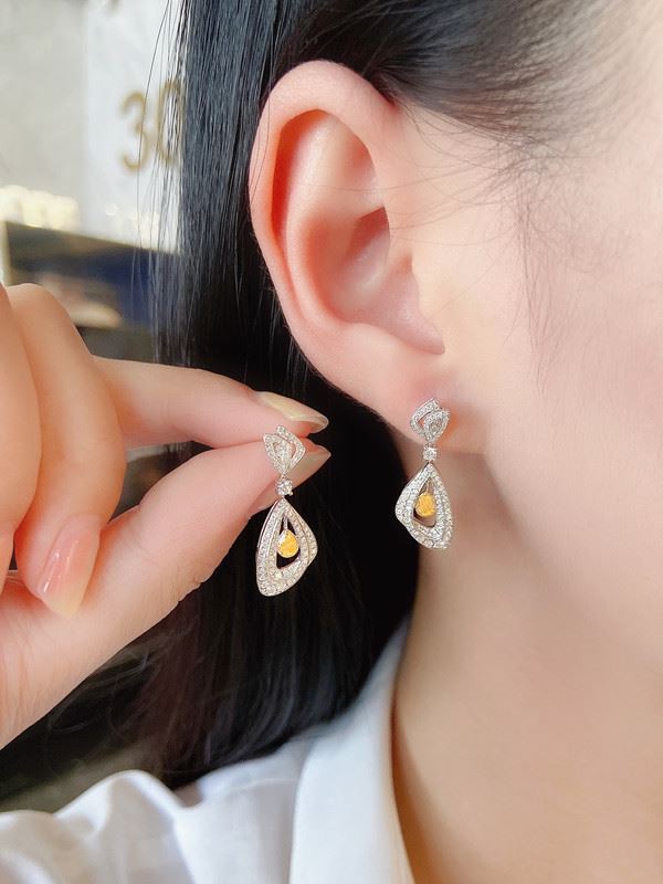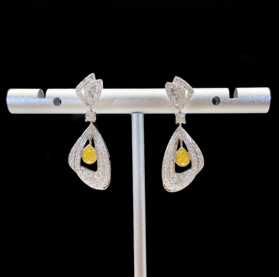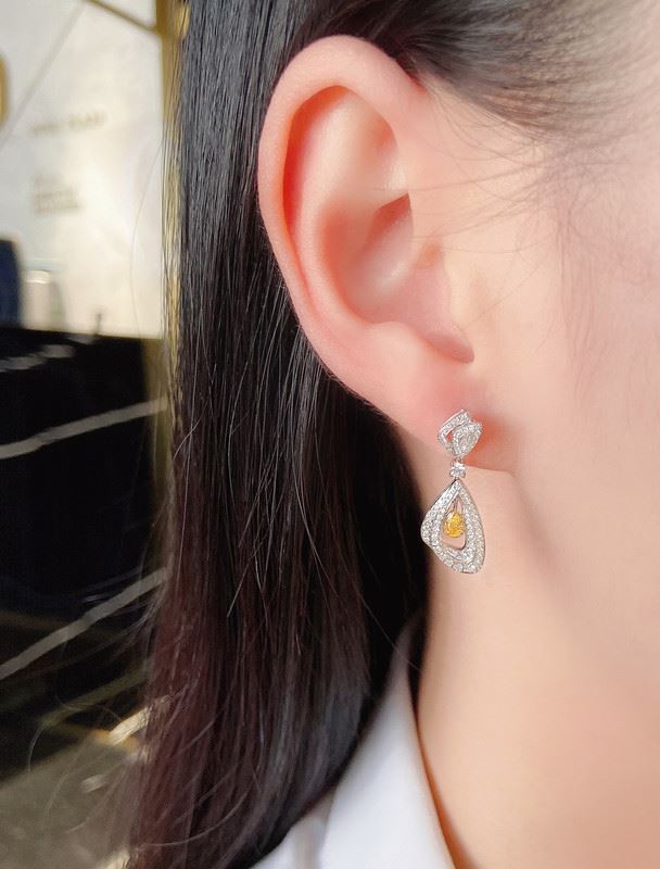 Crafted in 18K gold, vivid yellow diamonds sit at the center of layered openwork diamond frames, shaped like gently falling leaves. Elegant and sparkling without being overpowering, they suit both everyday wear and special occasions. Note: Comes with an AGL certificate and a domestic jewelry identification certificate.