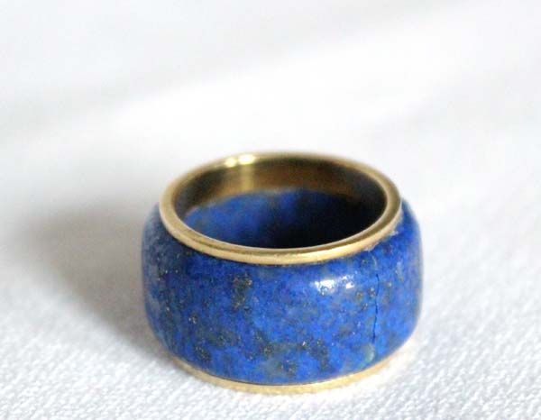 18K Gold and Lapis Band Ring, Size 6, measures .5''W, stamped 18K, 6.8g in total wt, pressure crack in lapis, beautiful ring