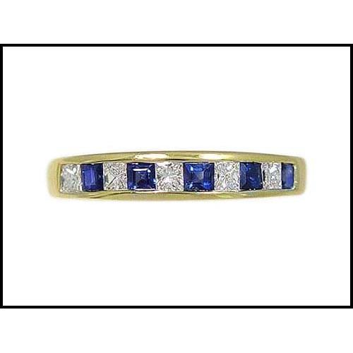 Superb color, natural sapphires are also very brilliant stones. As mixed with good quality princess cut diamonds we see magnificent color contrast as set in the beautifully made 18K solid gold half eternity ring. Was fairly priced for $800, and you can own it for just a fraction of that! Gem weight is 4/5 carats. Size 7.