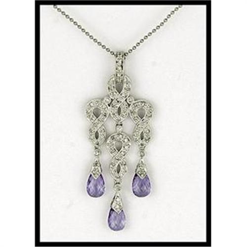 A lovely old look, but perfect for today's fashion, this 18K white gold pendant is set with 68 diamonds and 3 briolette cut amethysts that have lovely movement when worn. We see similar designs today that are priced for $800 to $1000. It measures 50mm (2") x 20mm (3/4").