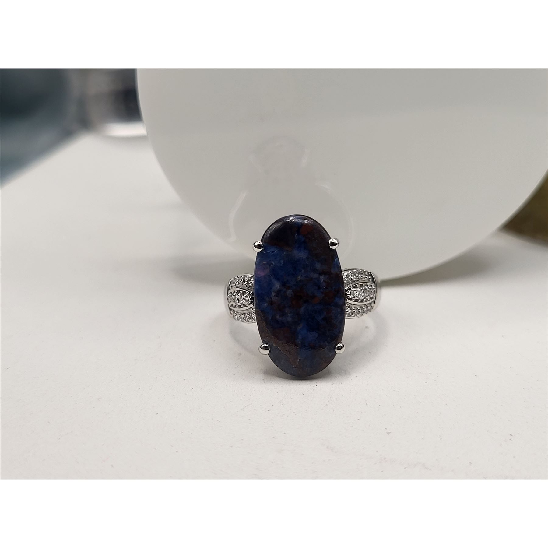 #Auction13 #SugiliteGem #DiamondAccent #LuxuryRing #FineJewelry #18KWhiteGold #BidFairTreasures #CollectorGem #PurpleElegance #DistinctiveDesign