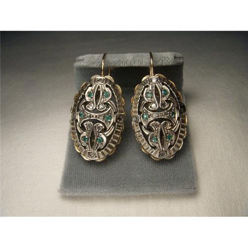 </font></strong>You are looking at a pair of antique 18K pink gold diamond and emerald filigree earrings. Each lovely piece features 10 rose cut diamonds and 6 natural round emeralds measuring 2 mm each. Each earring measures 1 and 1/8 of an inch long by 3/4 of an inch wide. The pair weighs 11.9 grams. They are in mint condition.</font>