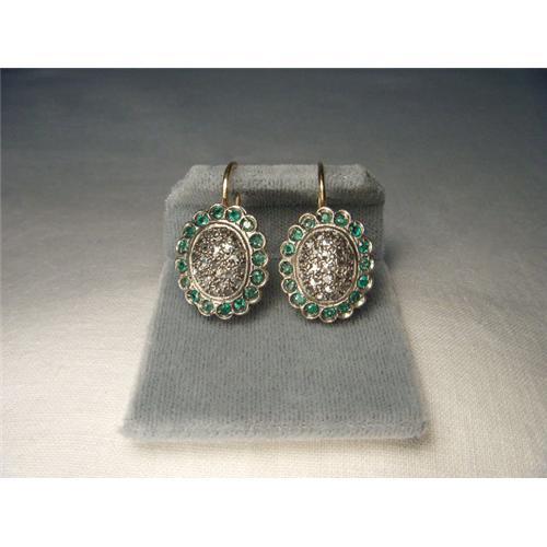 <tr><td>Title:18K Pink Gold Rose Cut Diamond Emerald Earrings</td></tr>
