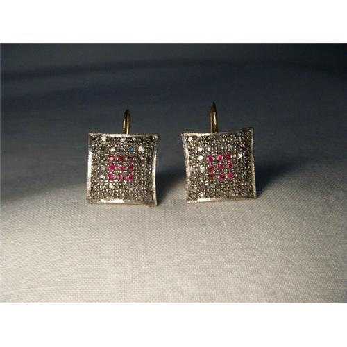 <tr><td>Title:18K Pink Gold Rose Cut Diamond Ruby Earrings</td></tr>