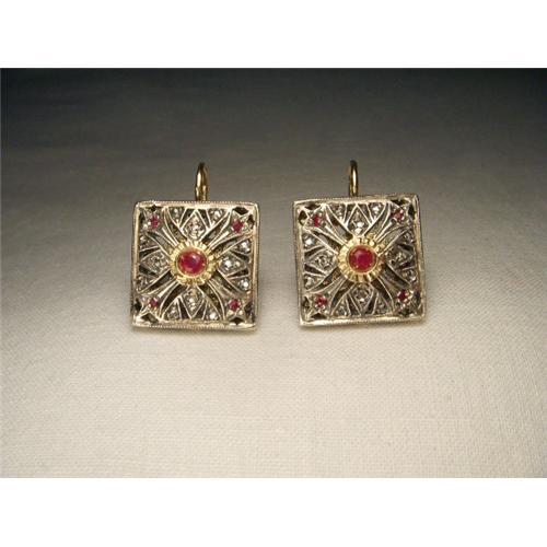 <tr><td>Title:18K Pink Gold Rose Cut Diamond Ruby Earrings</td></tr>