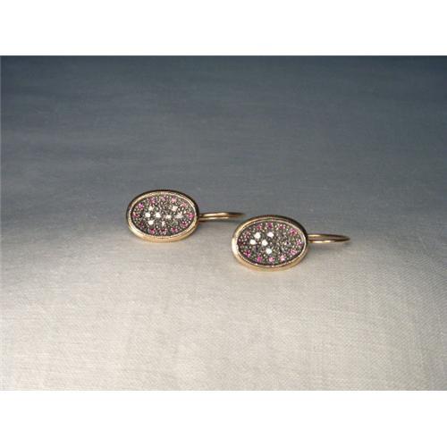 <tr><td>Title:18K Pink Gold Rose Cut Diamond Ruby Earrings</td></tr>