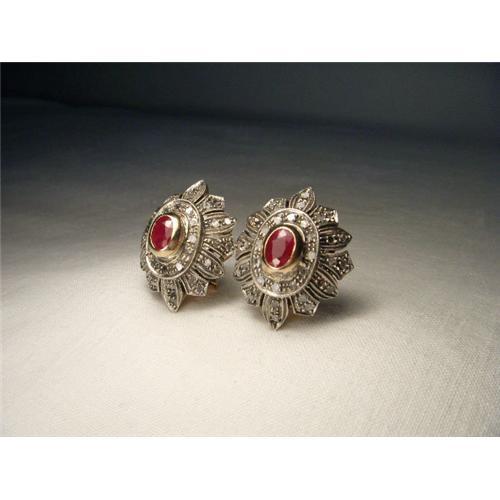 <tr><td><font size="2" face="Arial, Helvetica, sans-serif"><strong><font color="#000033">Title:</font></strong>18K Pink Gold Rose Cut Diamond Ruby Earrings</font></td></tr>