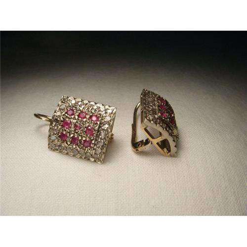 <tr><td>Title:18K Pink Gold Rose Cut Diamond Ruby Earrings</td></tr>