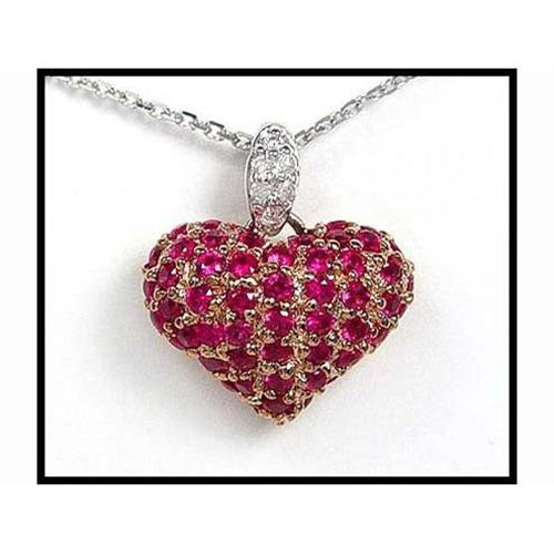 <tr><td>Title:18K Pink Gold Ruby Diamond Heart Pendant</td></tr>