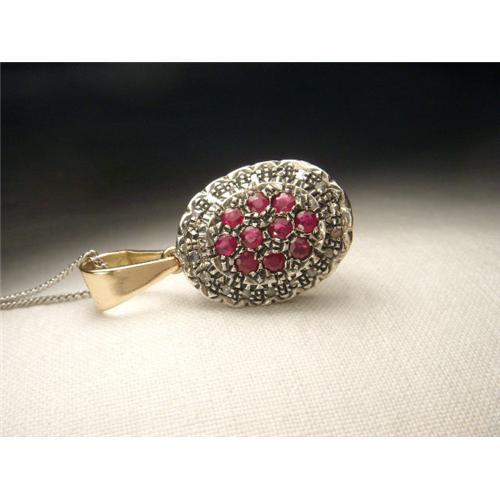 <tr><td>Title:18K Pink Rose Gold Diamond Ruby Pendant</td></tr>