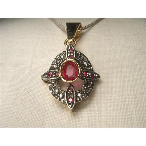 <tr><td><font size="2" face="Arial, Helvetica, sans-serif"><strong><font color="#000033">Title:</font></strong>18K Pink Rose Gold Diamond Ruby Pendant</font></td></tr>
