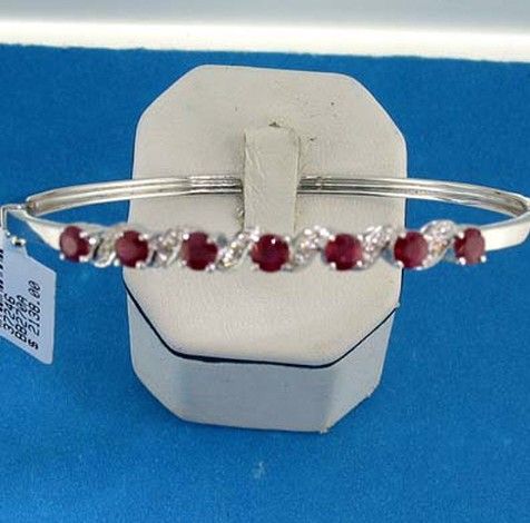 18K BANGLE WITH 0.14CT RDIA & 2.44CT RUBY