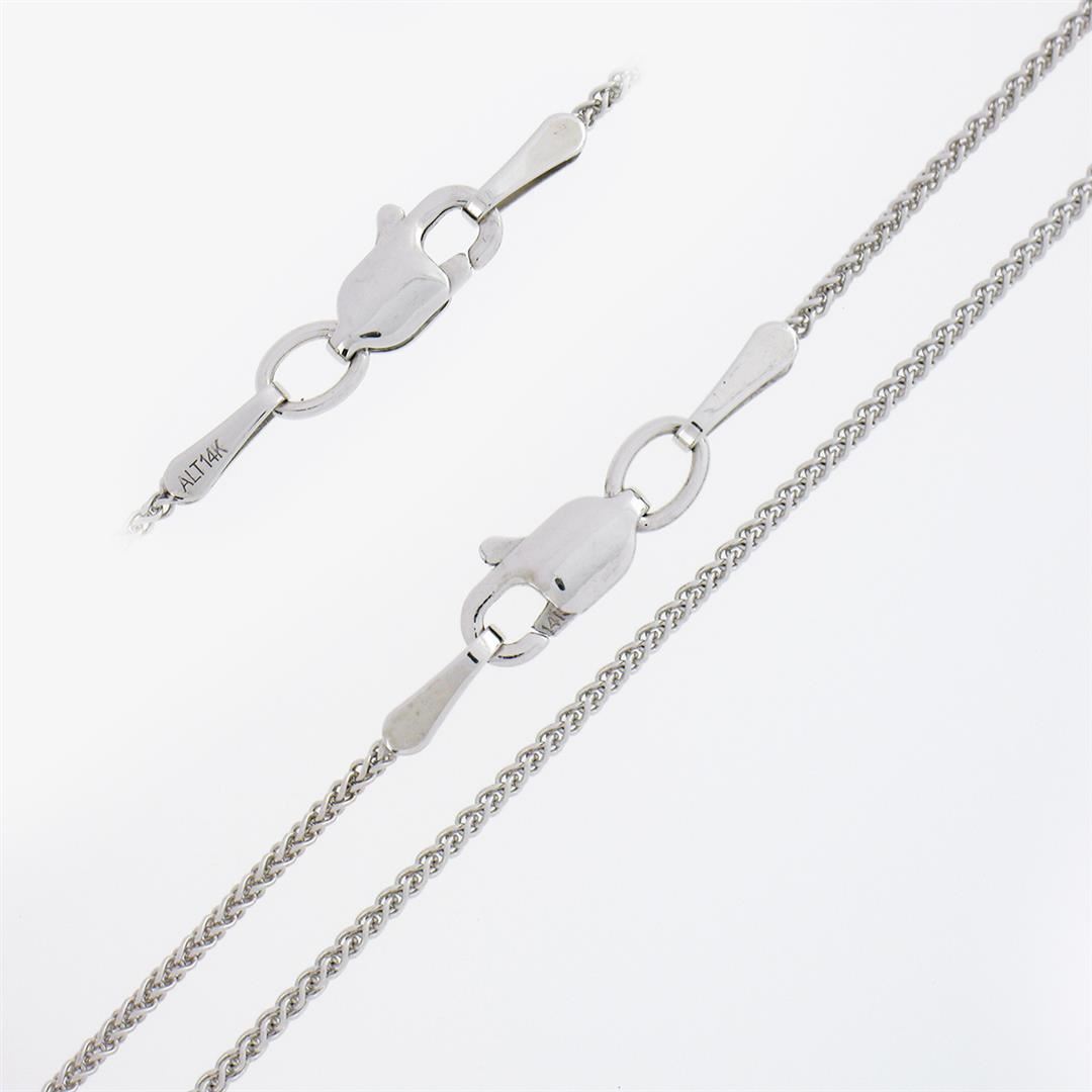 A solid 18k & 14k yellow & white gold open cross pendant necklace, featuring 61 round brilliant cut natural diamonds (G/H - VS1/VS2 ; 0.60ctw). 18.5 inch wheat link chain, 5.06 grams total weight, pendant measures 33.90x19.15mm.