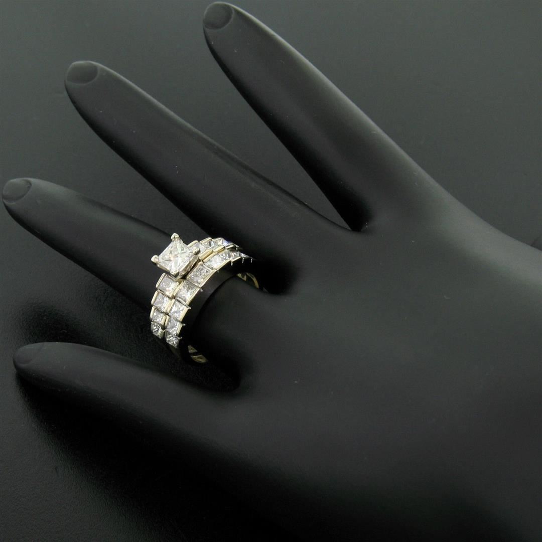 18K TT Gold 2.21ctw EGL Cert. Princess Cut Diamond Engagement & Wedding Ring Set. Please see photos and description for all available information. An estate solid 18k yellow and white gold engagement and wedding ring set, featuring 1 EGL certified princes
