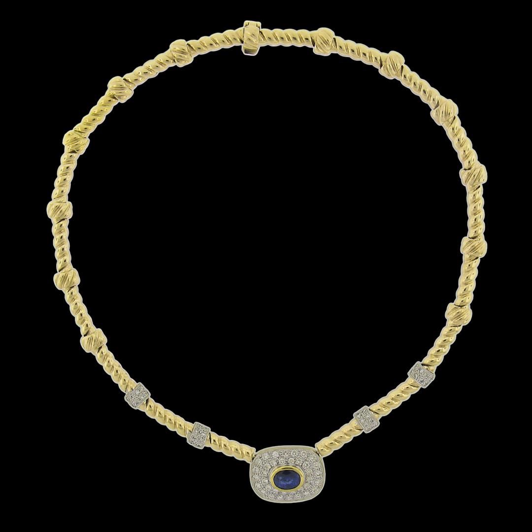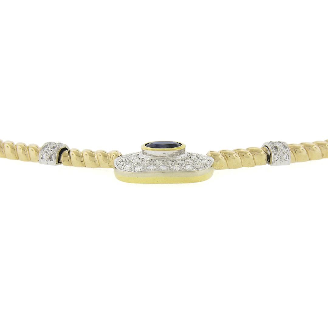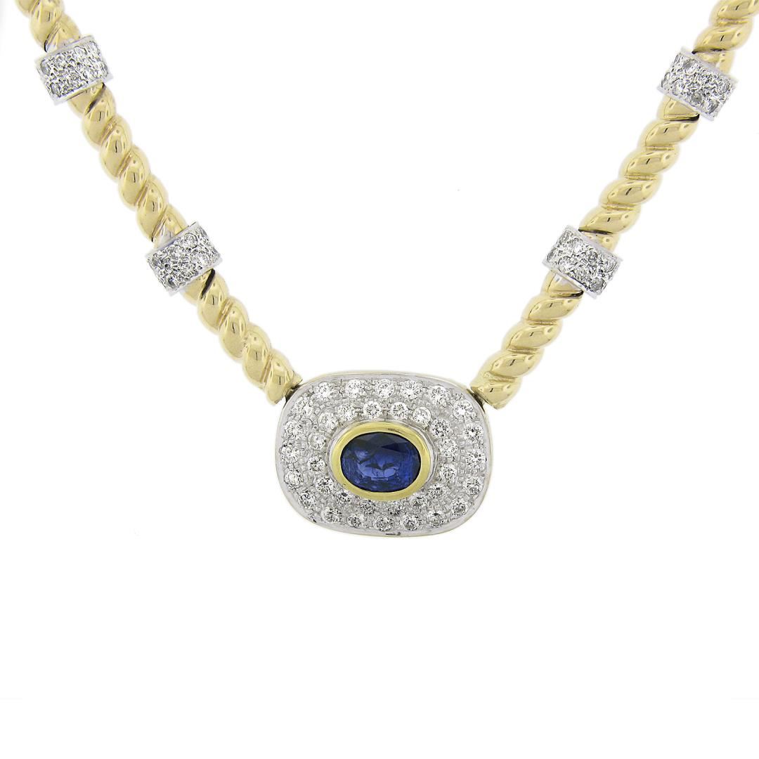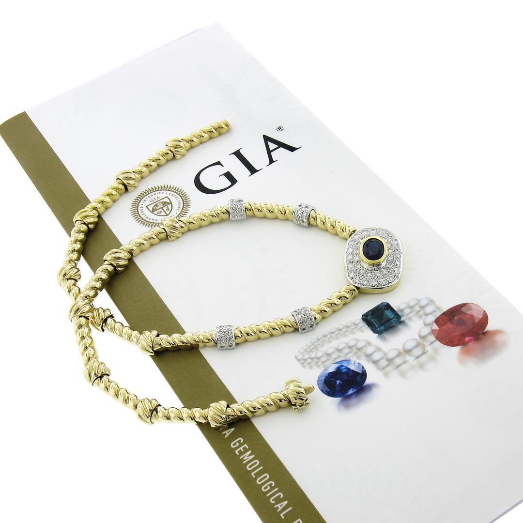 18K TT Gold 3.30ctw GIA Bezel Oval Sapphire & Pave Diamond Cable Link Necklace