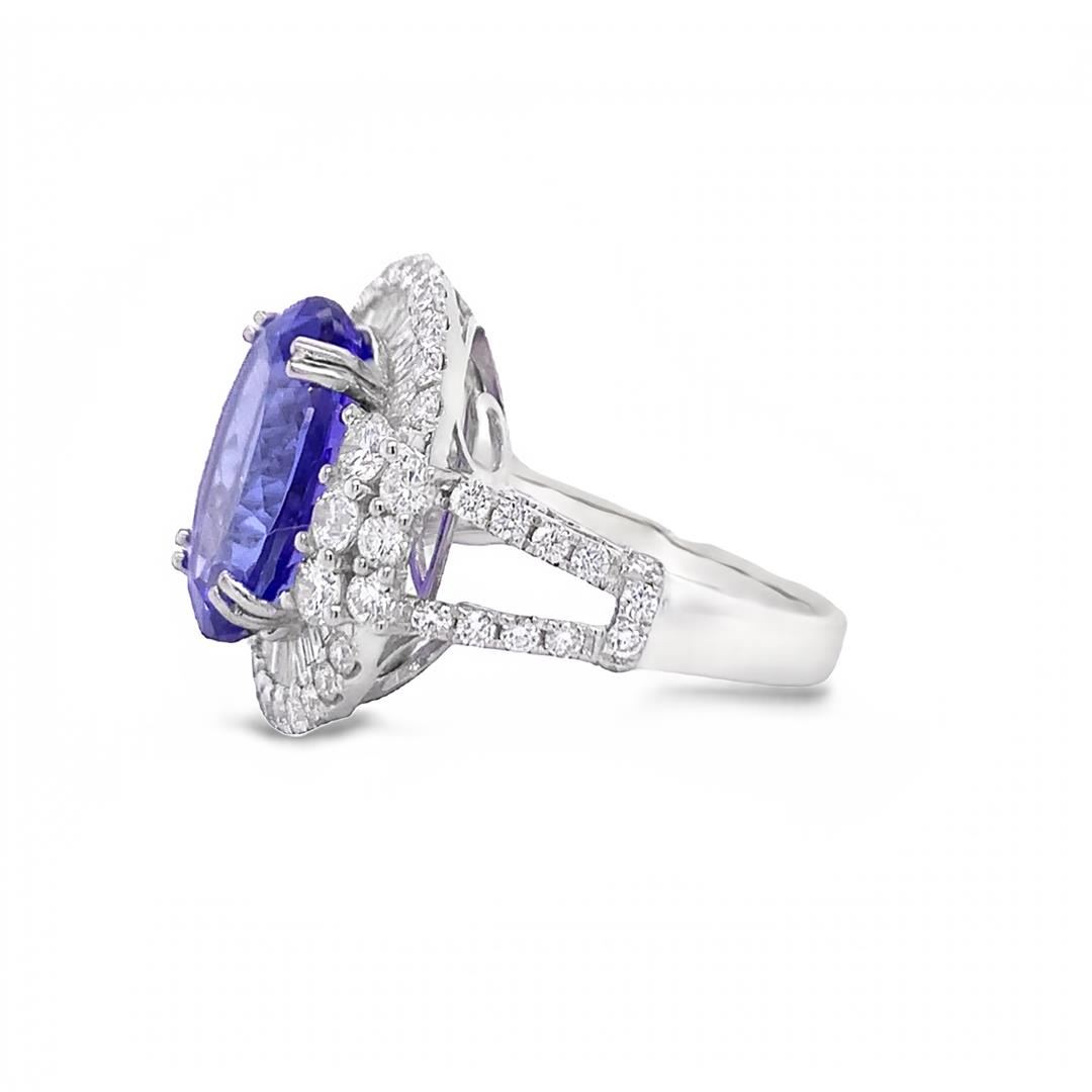 18K Tanzanite Ring 8.95ct. Please see Photos and Description for all available information. This ring is the ultimate statement piece. The center stone is surrounded by smaller stones, and the ring is set on a large, raised, bezel-style band. This ring makes an unforgettable impression.