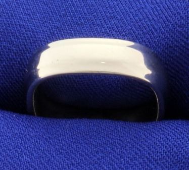 Stamped "750 Swiss" white gold, the band is 6.1mm wide and is size 9. 9.9g