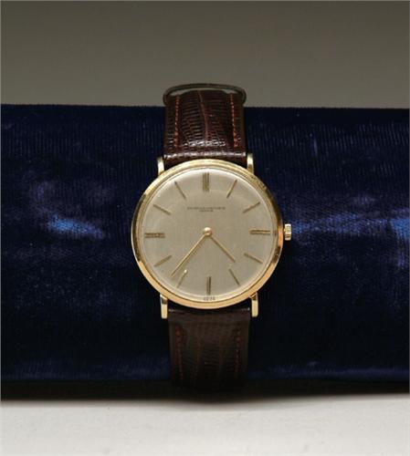 18K VACHERON and CONSTANTINE WRIST WATCH. Original silver dial marked Vacheron and Constantine and SWISS. Movement is marked Vacheron and Constantine. 17 Jewels. Model Number of case is marked 6355. CONDITION: Clean estate condition, could use cleaning, running. 9-25977
