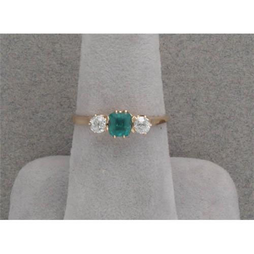 Beautiful 18K (unmarked, but tested) rose gold Victorian ring. The emerald has a couple of small edge chips and is a "lively" stone with beautiful color that measures approximately 4.62MM x 4.12MM and is estimated to weigh approximatley .36 carats. It is accented by two old European-cut diamonds which are estimated to weigh .13 carat each for a total diamond weight of over 1/4 carat. It is a size 7 1/2 and weighs 1.9 grams.