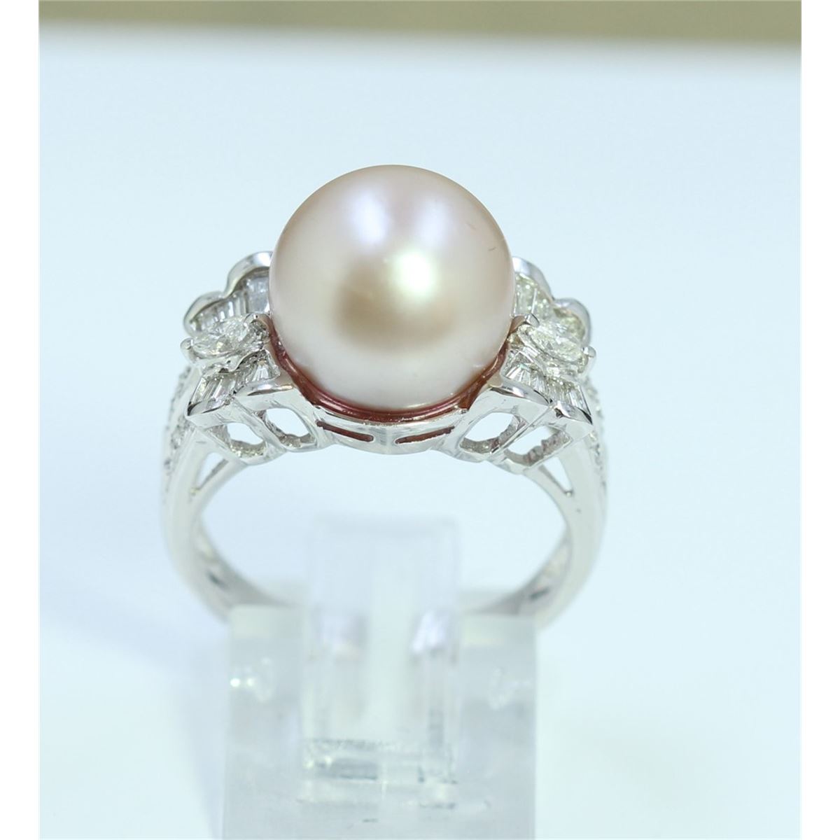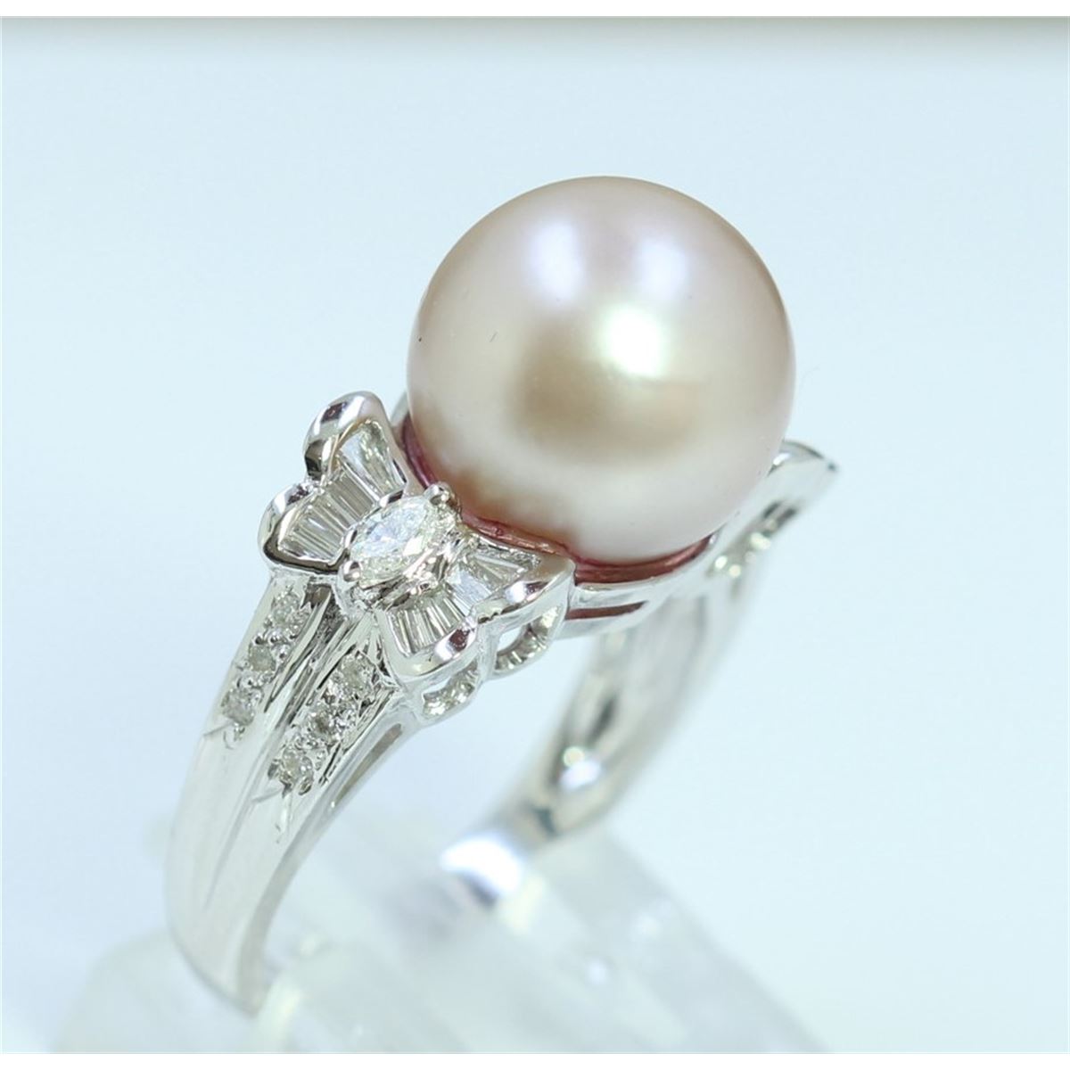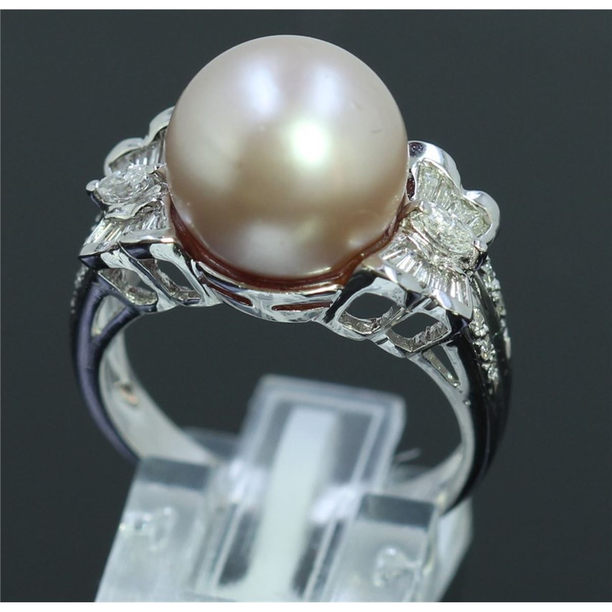 18K W/G DIAMOND RING WITH PEARL/DIAMOND 0.42CT/PEARL 11.50 mm/ROUND DIAMOND 0.08CT/MQ-0.05CT