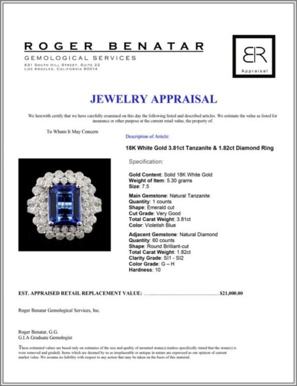 Regarding Appraised Jewelry and Loose Stones - Auctionfarm sends them out to a third party for Retail Replacement Value Appraisals, which are the most common. These types of evaluations are written for insurance needs. This would be the cost to replace the jewelry with an item of equal quality and kind, considered to be the current market price or the replacement value. This type of appraisal is done to protect you in the event of damage or loss of a valuable item. Our appraisals are conducted by independent 3rd Party appraisal firms that utilizes Certified GIA Gemologist. Appraisals should be used for verification of gemstone and/or metal weight, size, and grade only, not actual value. Appraisal value should be considered for insurance purposes only, not actual value, as price varies greatly from retail locations thru out the world. Items should not be purchased with the expectation to resell for appraisal price, or for profit.