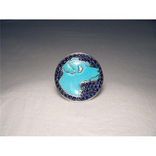 <tr><td>Title:18K WG Diamond Turquoise Sapphire Dog Ring</td></tr>