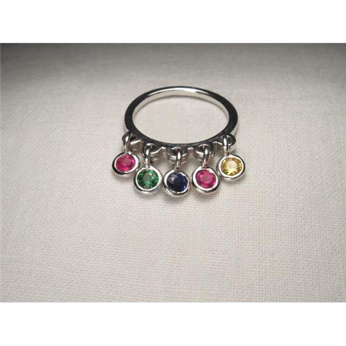<tr><td>Title:18K WG Gold Multi-Color Sapphire Charm Ring</td></tr>