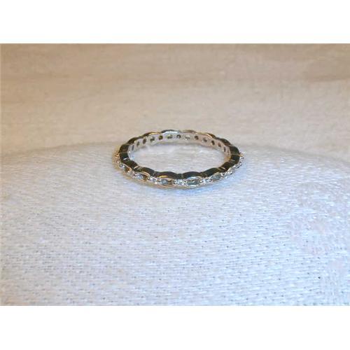 You are looking at a lovely 18K white gold and diamond stacking ring. This authentic piece is by the famous jewelry designer Hidalgo. It has an open work design with 16 brilliant round diamonds. Stunning on its own, this stackable piece may also be worn as a complete set with the Sea Gull ring or any of the Hidalgo rings available separately. The band measures a bit under 1/8 of an inch wide. It is a size 6.5. The ring weighs 2 grams. It is in mint condition.